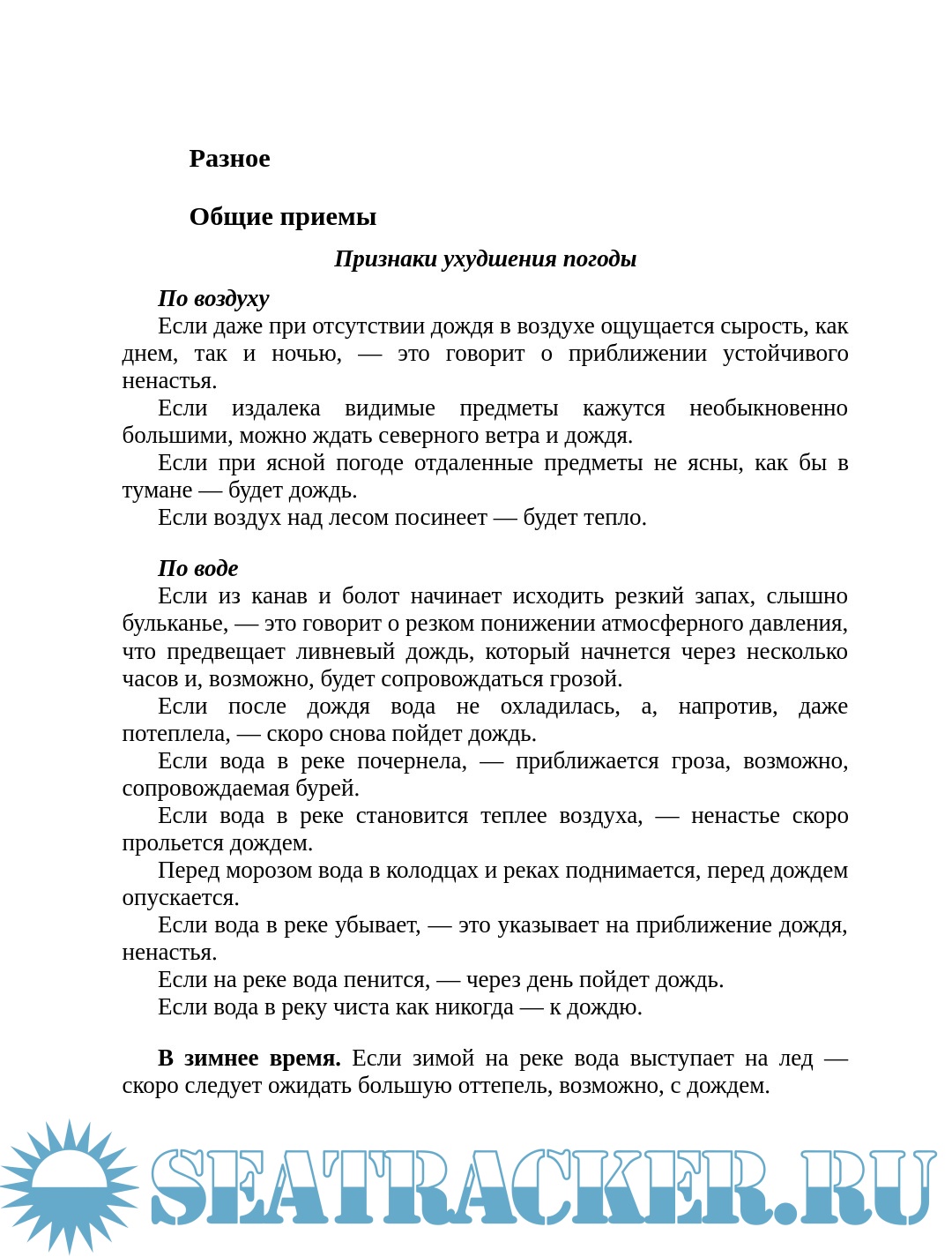 Энциклопедия примет погоды. Предсказание погоды по местным признакам