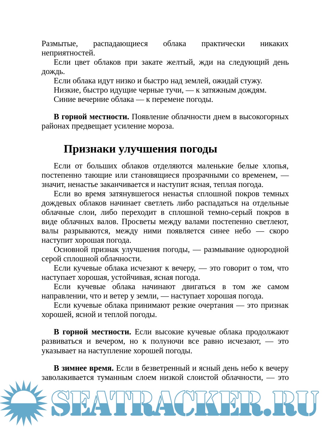 Книга будет особенно полезна морякам, рыбакам, туристам и альпинистам – всем тем, для кого заблаговременное предсказание ненастья – вопрос жизни и смерти.