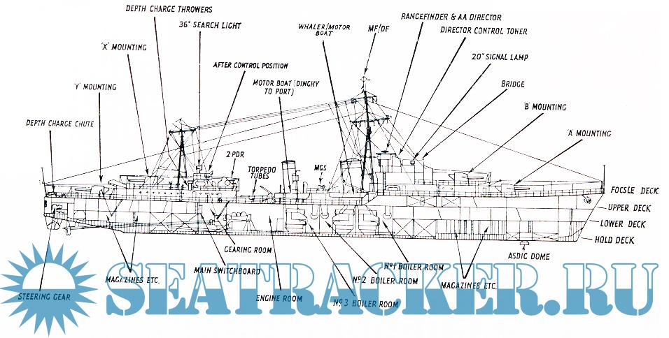 The Admiralty therefore decided that the next class of destroyer must be larger, thus providing a steadier platform for the extra guns that were needed to defend the fleet against torpedo attack by these big foreign ships. Their main armament was to be so designed that it could also be used to augment the antiaircraft defenses of the fleet. Torpedo armament was considered less important, while their anti-submarine capability was not given a very high priority. Admittedly this feature of their armament was superior to earlier classes, but perhaps it was felt that the comforting use of asdic would guarantee the defeat of any under water menace. The new class would not be expected to carry out either high-speed mine-sweeping or mind laying