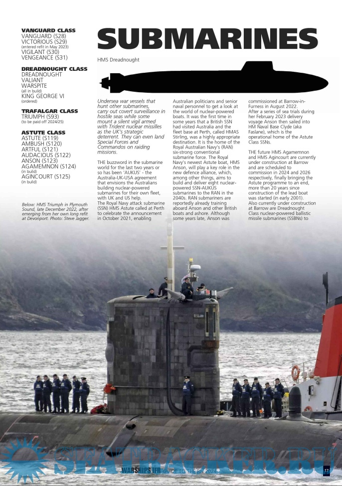 Nothing is more complex and challenging for the Royal Navy today and tomorrow than Britain being a key player in the Australia-UK-US (AUKUS) defence pact to build new nuclear-powered attack submarines. Therefore, the Guide provides details and commentary on that globe-spanning venture. It also offers the latest on the programme to build new Dreadnought Class Trident missile submarines to provide the future nuclear deterrent to protect the UK and NATO allies.