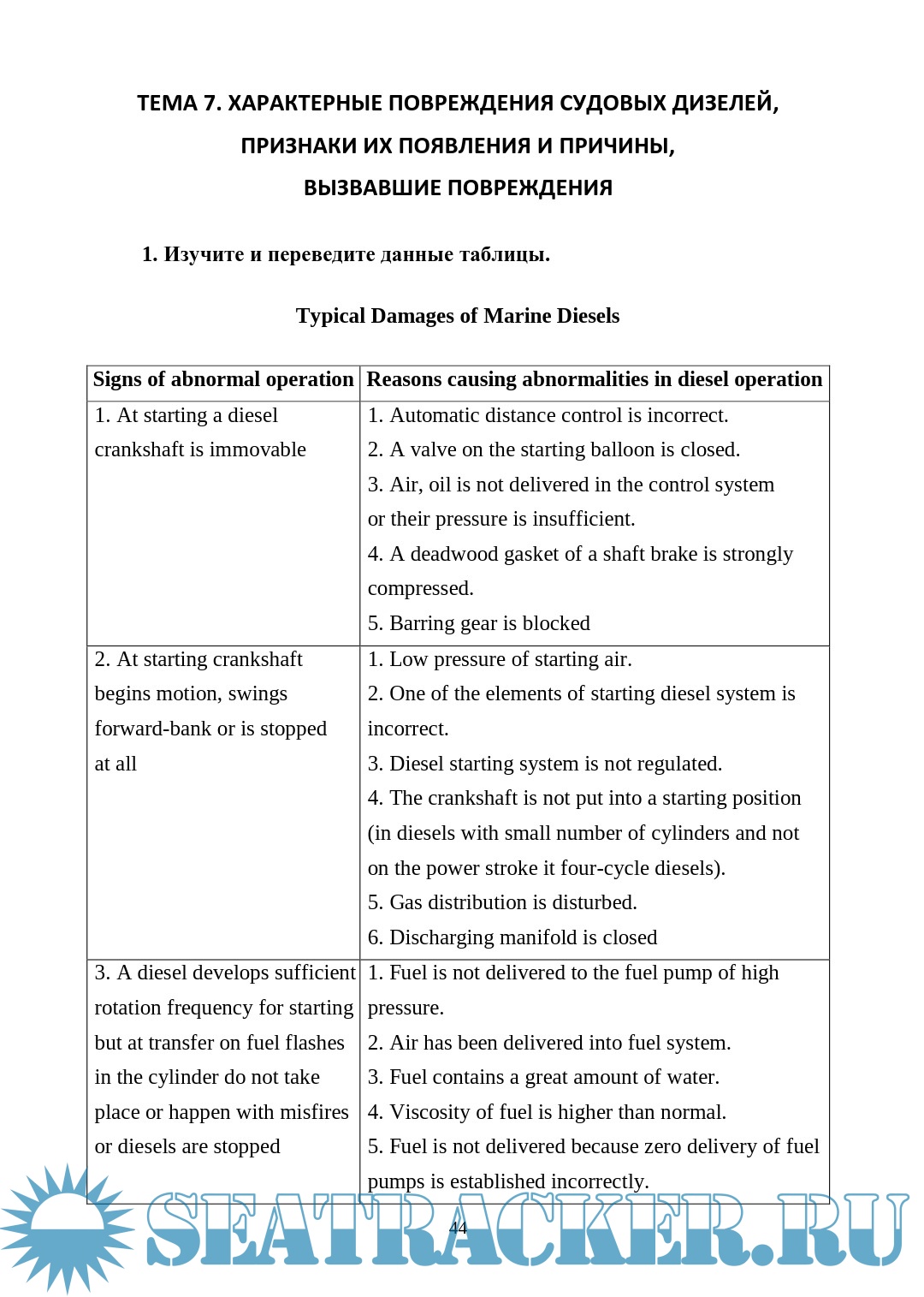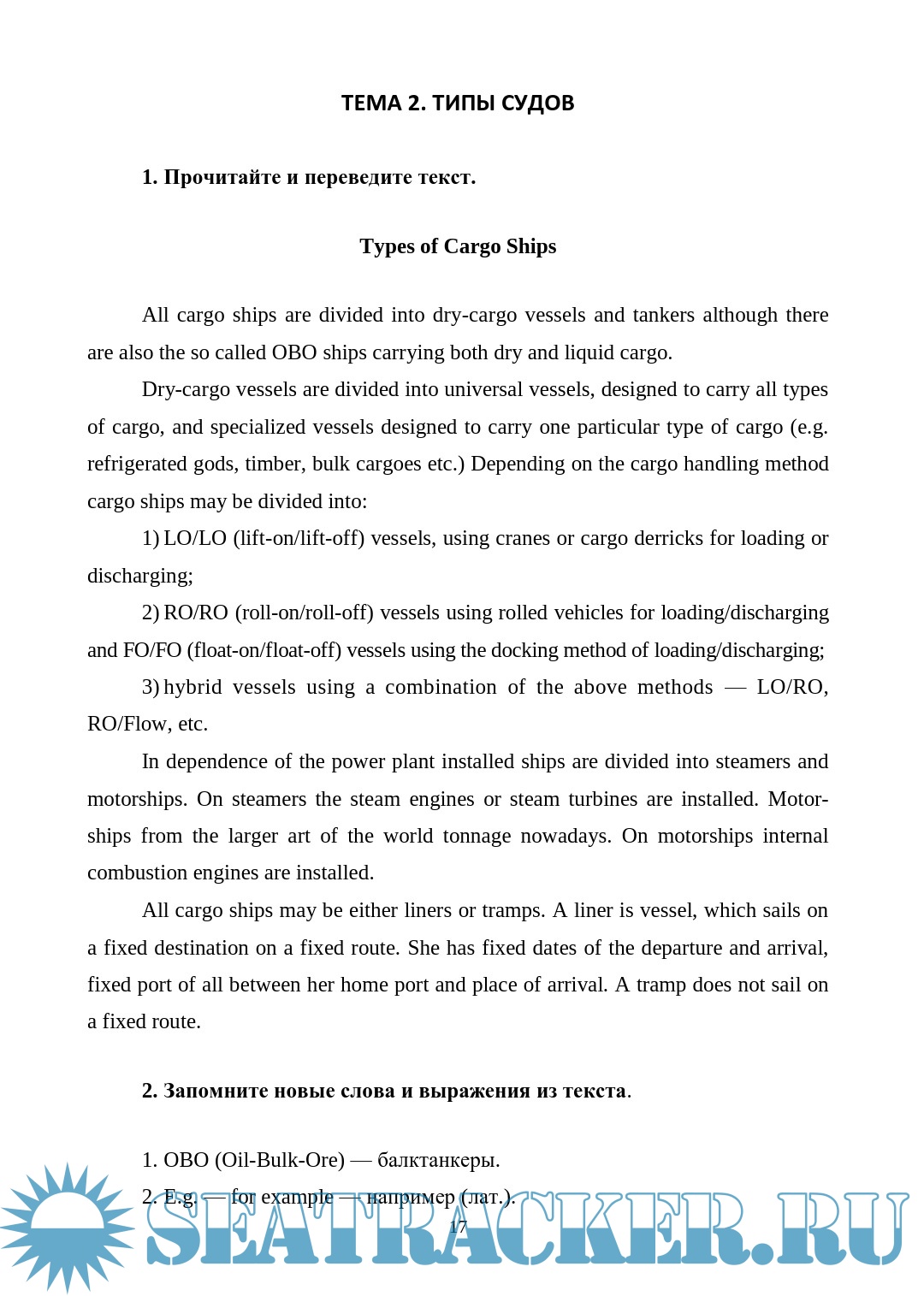 Учебное пособие предназначено для студентов, обучающихся профессии 26.01.09 «Моторист судовой» и специальности 26.02.05 «Эксплуатация судовых энергетических установок», изучающих дисциплины «Иностранный язык (английский)», «Профессиональный английский язык».