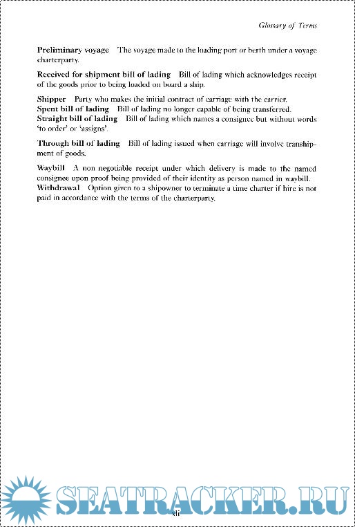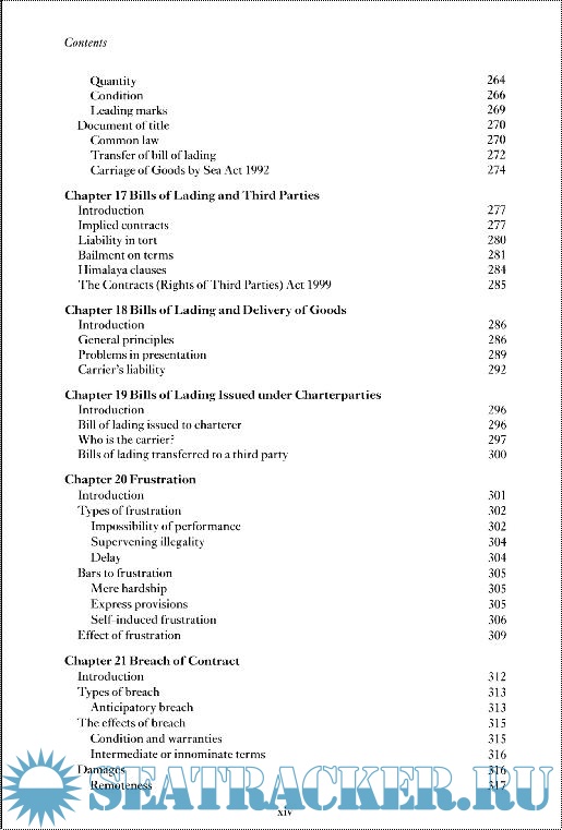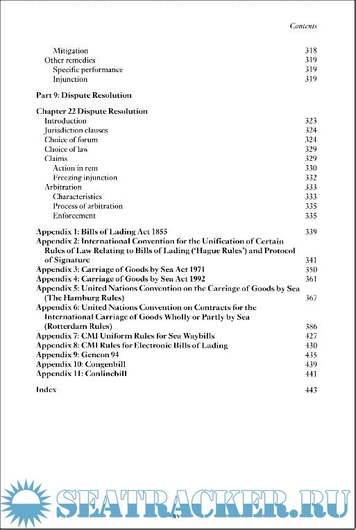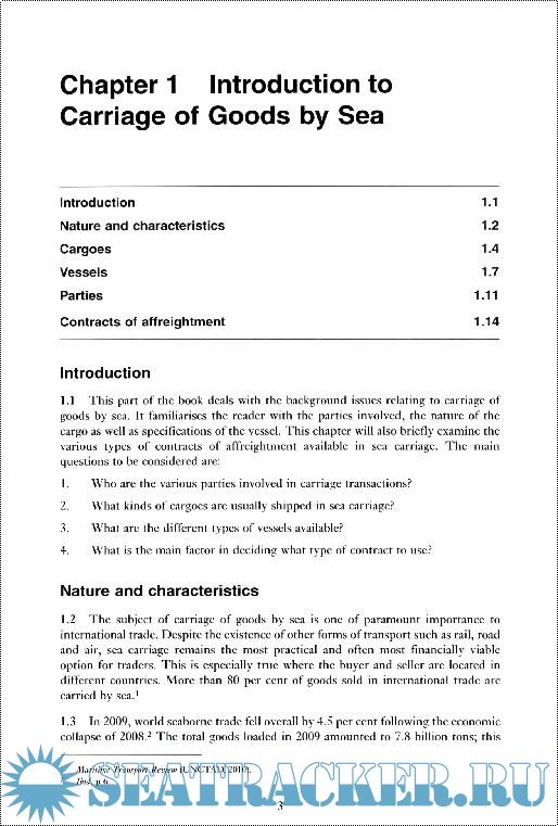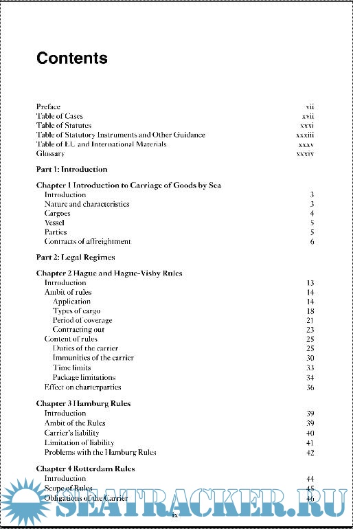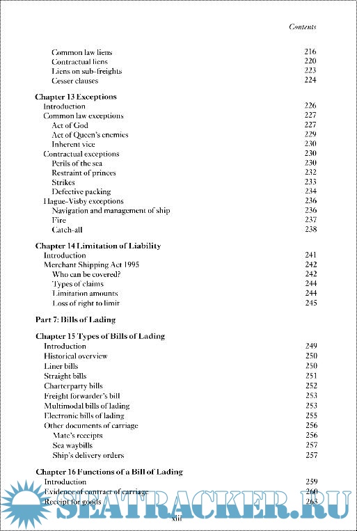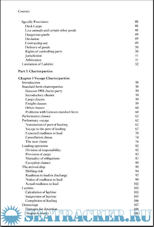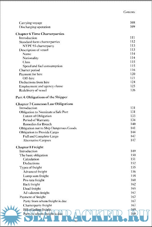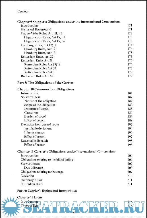 Material covered a general introduction; bills of lading; charterparties; international and domestic regulations; rights and obligations of the parties under a contract of carriage; limitations of liability; and remedies.