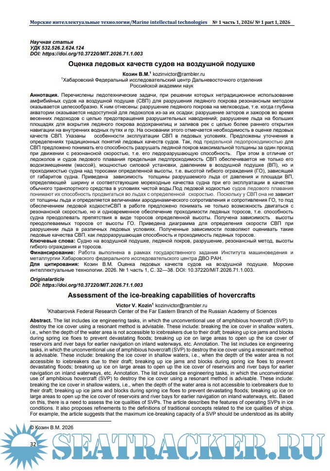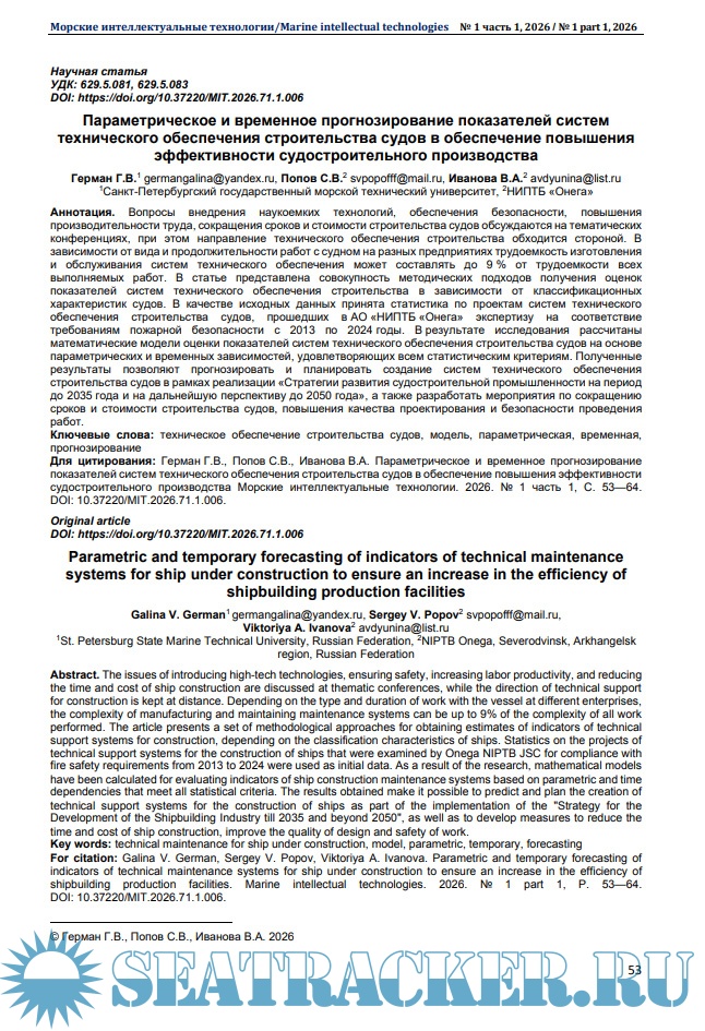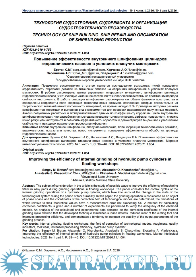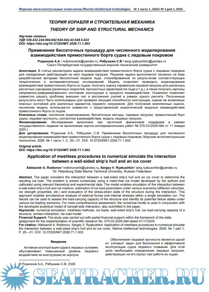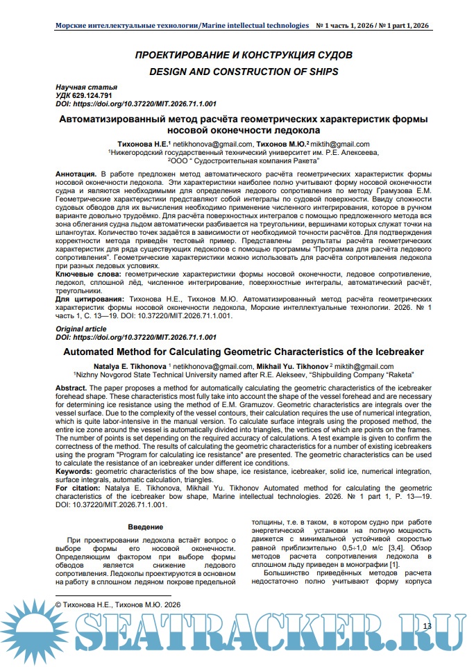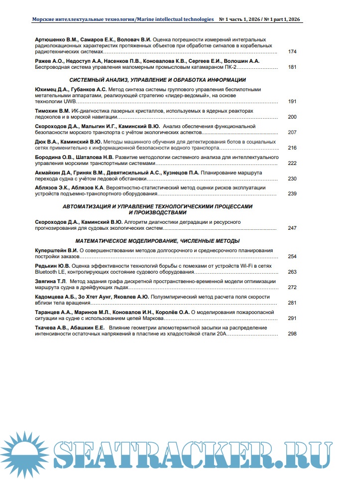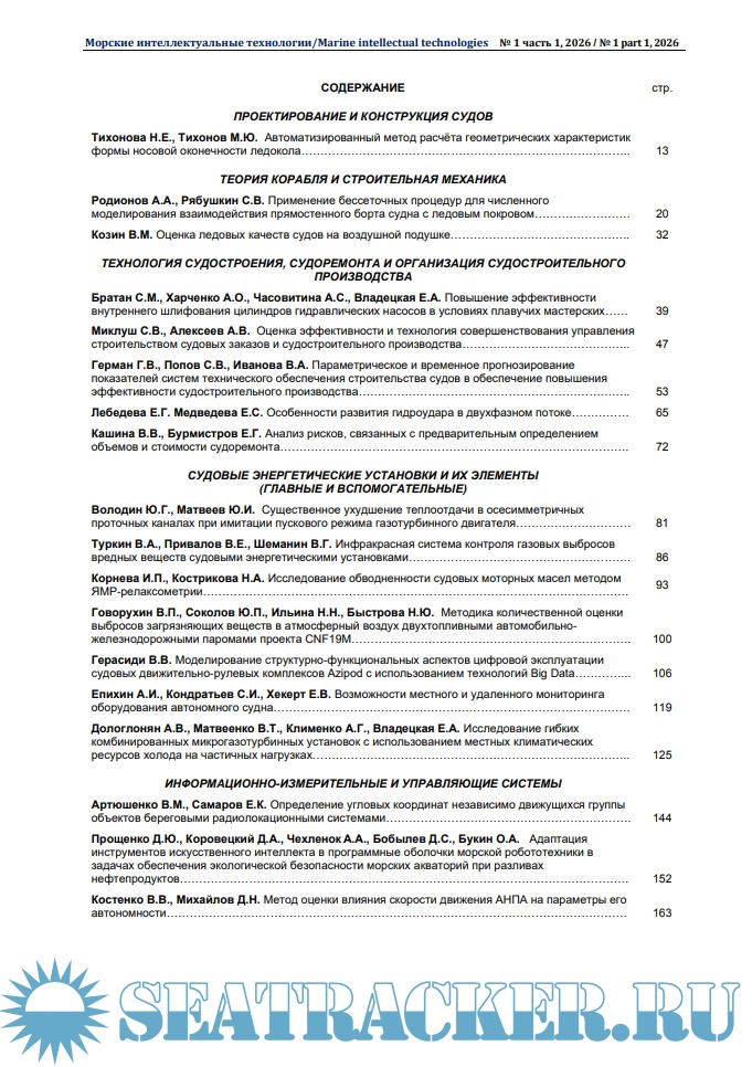 Морские интеллектуальные технологии 2026 № 1 часть 1