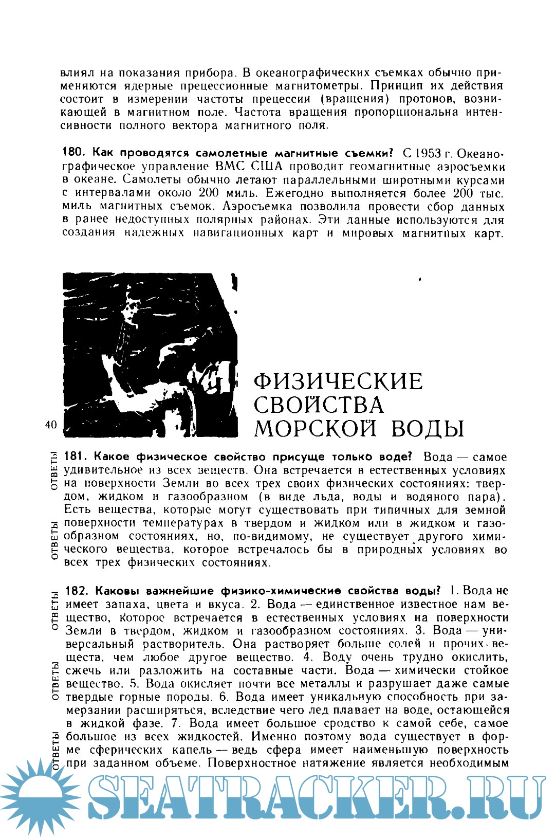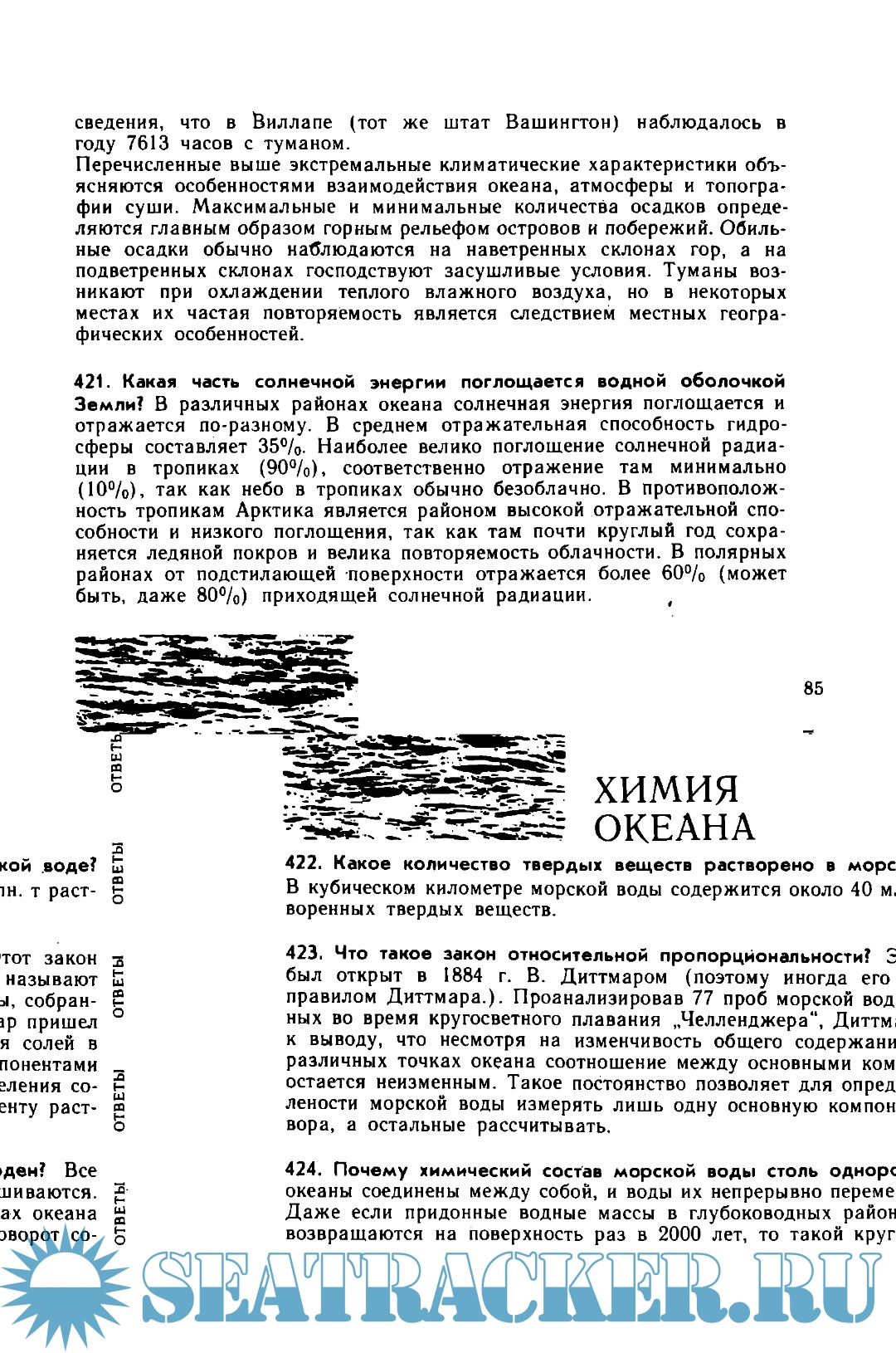 Книга „1001 вопрос об океане" в общем отвечает своему прямому „микроэнцимопедическому"' назначению, она представляется довольно удачной и интересной по стилю. Использование формы „вопрос — ответ" придает книге непринужденный характер не слишком обязательной беседы.
