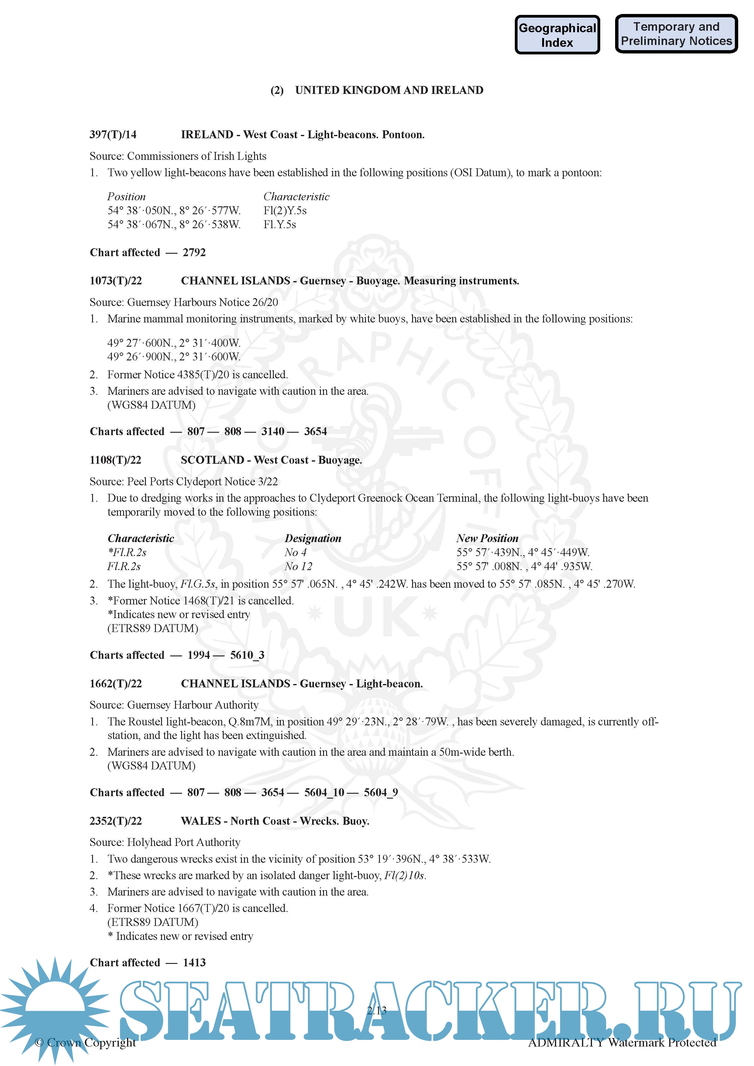 Year: 2026 Language: English Author: UKHO Genre: Documentation Publisher: United Kingdom Hydrographic Office (UKHO) Edition: January 2026 Format: PDF Quality: eBook Pages count: 606 + 807 Description: Annual Summary of ADMIRALTY Notices to Mariners 2026 (NP247) To supplement Weekly NMs, the UKHO produces an Annual Summary of Notices to Mariners (NP247). This publication contains the Annual Statutory Notices to Mariners, a summary of Temporary and Preliminary Notices to Mariners still in force at the start of the year, and a Cumulative Summary of Amendments to ADMIRALTY Sailing Directions. The paper version of the Annual Summary of Notices to Mariners is published annually in January. Correct to 31 December 2025 (Week 52/25)