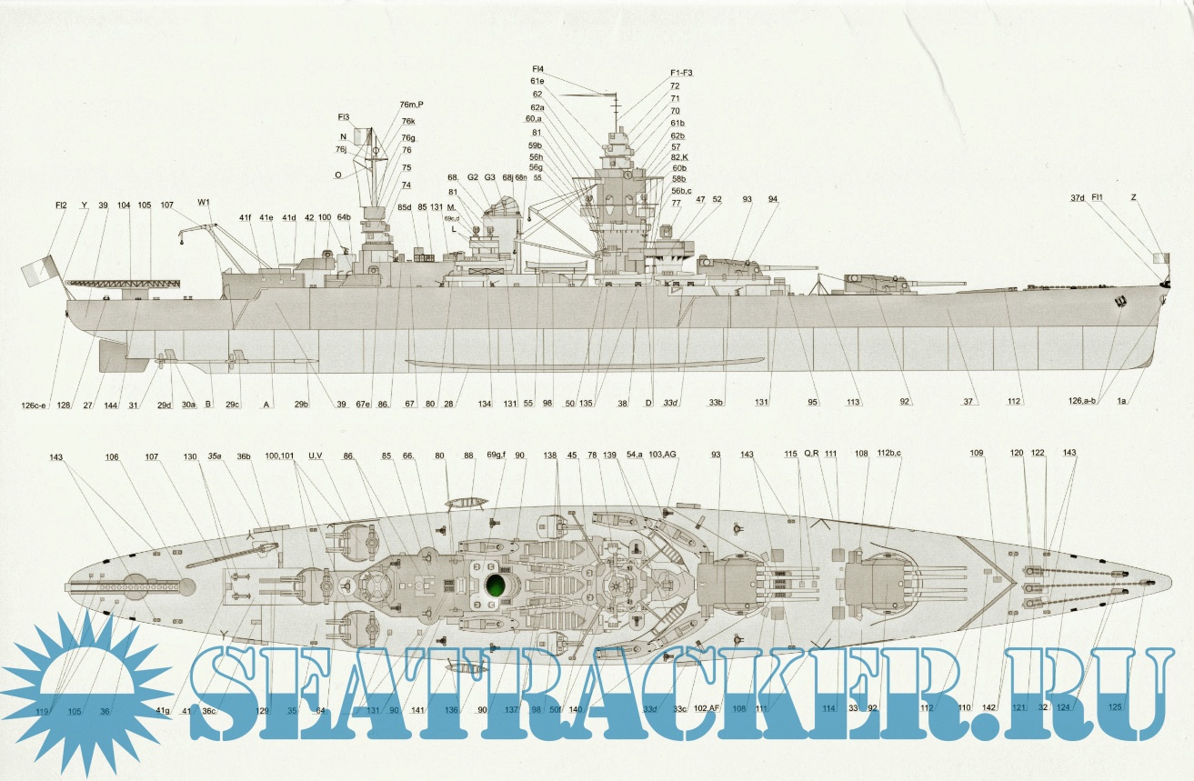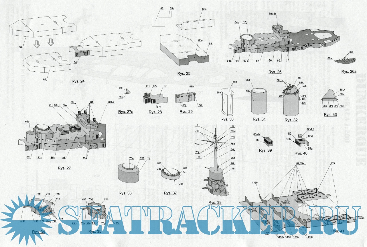 30 листов цветных выкроек и инструкций для изготовления бумажной модели французского линкора Dunkerque в масштабе 1:200