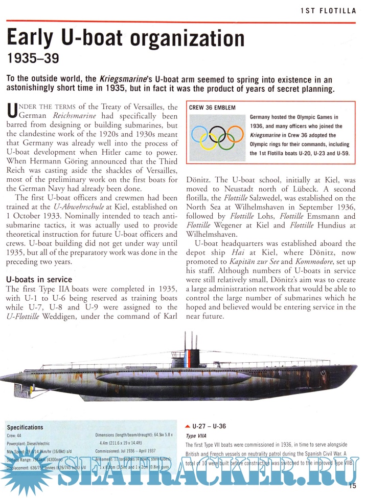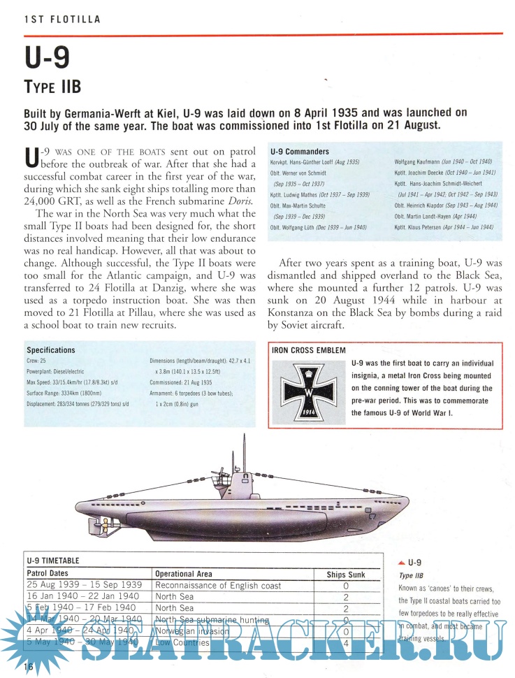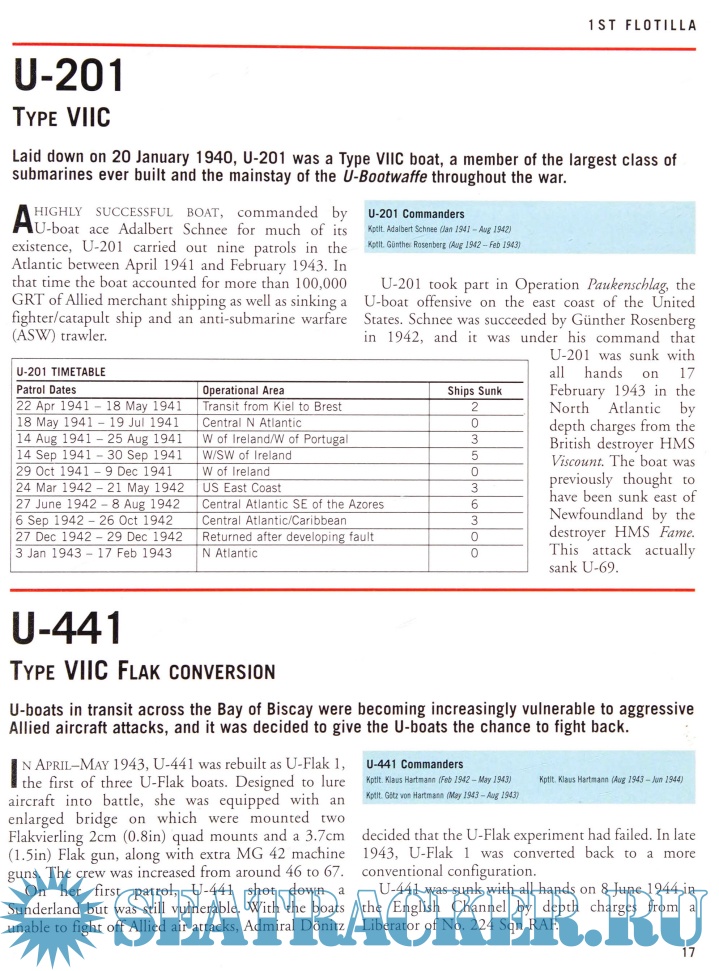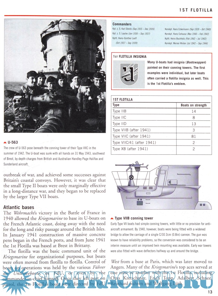 Year: 2006 Language: English Author: Chris Bishop Genre: Guide, History of the Navy Publisher: Amber Books Edition: The Essential Submarine Identification Guide Format: PDF Quality: eBook Pages count: 200 Description: Although Germany had lost her fleet at the end of Word War I, by 1939 she had built up a formidable force of modern vessels. It was the Kriegsmarine’s submarines – the U-boats – that were to prove the most effective and deadly arm of the German navy in World War II. Built to harass Allied shipping, the U-boat ‘wolfpacks’ almost succeeding in bringing Britain to her knees in their campaign to restrict supplies and materiel from crossing the Atlantic. By the end of 1942, their most successful year, U-boats had sunk 1664 vessels – 7.26 million tonnes of shipping. Illustrated with detailed artworks of German U-boats, Kriegsmarine U-Boats 1939–45 is a comprehensive guide to the submarine arm of the German navy in World War II. Divided by flotilla, this book offers a complete organizational breakdown of U-boat units, from the beginning of the war in the North Atlantic through to last days of the Reich. Each chapter includes a compact history of the U-boat flotilla’s role and impact on the course of the conflict, as well as unit markings, orders of battle, lists of commanders and numbers of kills. Every type of German submarine is featured. Each submarine profile is accompanied by specifications, as well as details of unit markings. Packed with profiles of every major type of German U-boat, Kriegsmarine U-Boats 1939–45 is an essential reference guide for modellers, military historians and naval warfare enthusiasts alike.