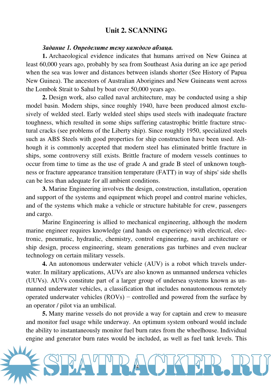 Description: Учебное пособие предназначено для магистров высших учебных заведений, обучающихся по направлению подготовки 26.04.02 «Кораблестроение, океанотехника и системотехника объектов морской инфраструктуры» по профилю «Проектирование судовых корпусных конструкций, систем и устройств». Основной целью пособия является обучение чтению и пониманию профессионально ориентированных текстов, а также развитие умений и навыков разговорной речи и анализа аутентичной научной литературы. Учебное пособие способствует формированию общекультурных и профессиональных компетенций, участвующих в проектной, производственно-технологической, организационно-управленческой и технико-эксплуатационной деятельности. Рассчитано на 108 часов аудиторных и самостоятельных занятий.