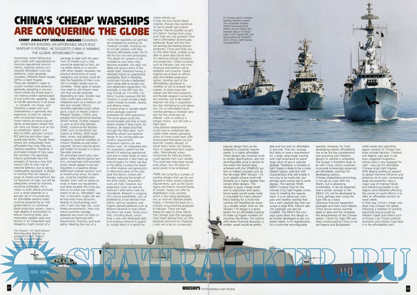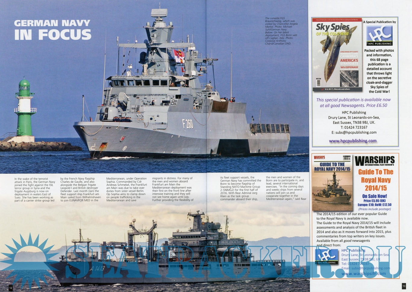 Description: Warships IFR puts the spotlight on the latest developments in the world’s navies. It covers current defence issues and has comments by leading analysts. The magazine regularly includes features on the Royal Navy and the US Navy in addition to incorporating news and features on all other navies across the globe. Warships IFR frequently carries in-depth articles on naval heritage.WARSHIPS International Fleet Review is published 12 times a year by Tandy Media Ltd who also publish Shipping Today & Yesterday (which provides news and features from the world of merchant shipping).