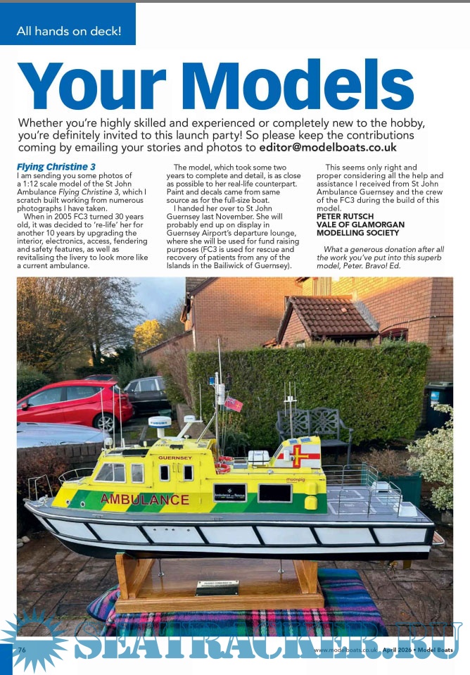 Year: 2026 Language: English Author: Lindsey Amrani (Editor) Genre: Periodical (Magazine) Edition: 2026-04 Format: PDF Quality: eBook Pages count: 84 Description: Model Boats magazine is a practical and informative read for those with a love for the hobby. It covers the latest news and views from the various clubs and associations around the country, useful hints, tips and step by step guides for those interested in the art of constructing a model boat as well as tests and recommendations of new boats and tools. Floating along behind these are great special features examining in depth different models from narrowboat to destroyer!