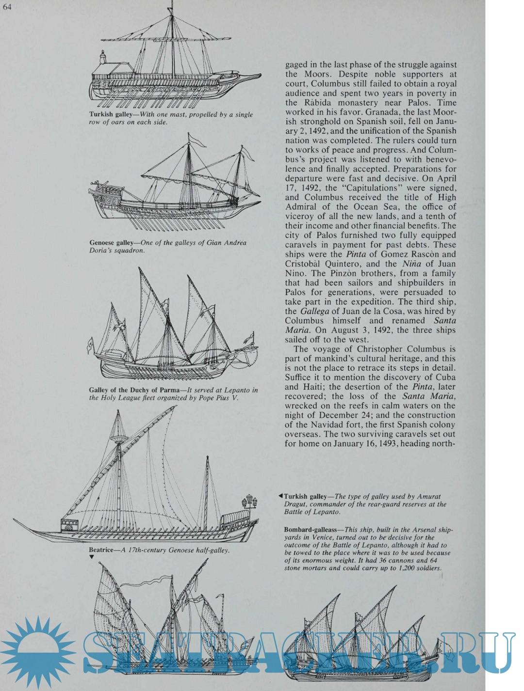 This rich 320-page volume brings to life the great navigators and cap‘tains from Eric the Red, Marco Polo, ' Vasco da Gama, Christopher Columbus to Francis Drake and Horatio Neson. And behind these heroes of the / great sea adventures were the famous vessels: the pharaoh Sahure’s ship, the Bucintoro, the Nifa, the Pinta, and the