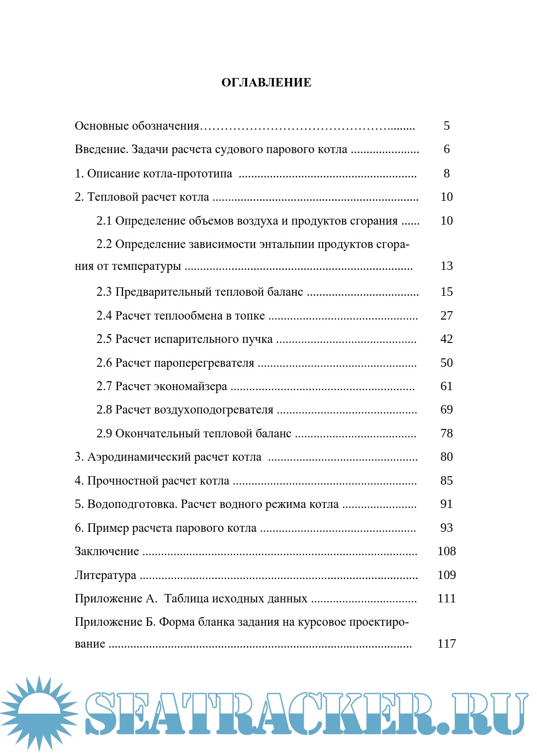 Расчеты судового парового котла