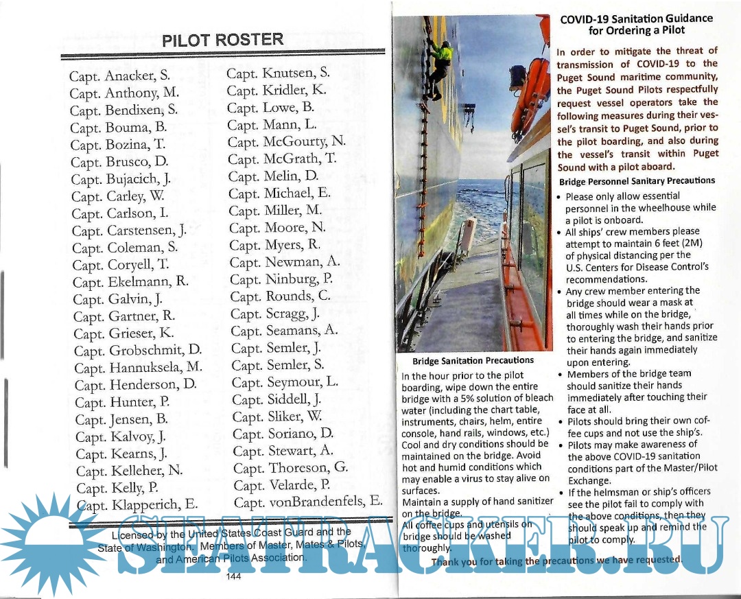 Description: The mission of the pilots is to ensure against the loss of lives, loss of or damage to property and vessels, and to protect the marine environment by maintaining efficient and complete pilotage service on our State's inland waters within the Puget Sound Pilotage district.