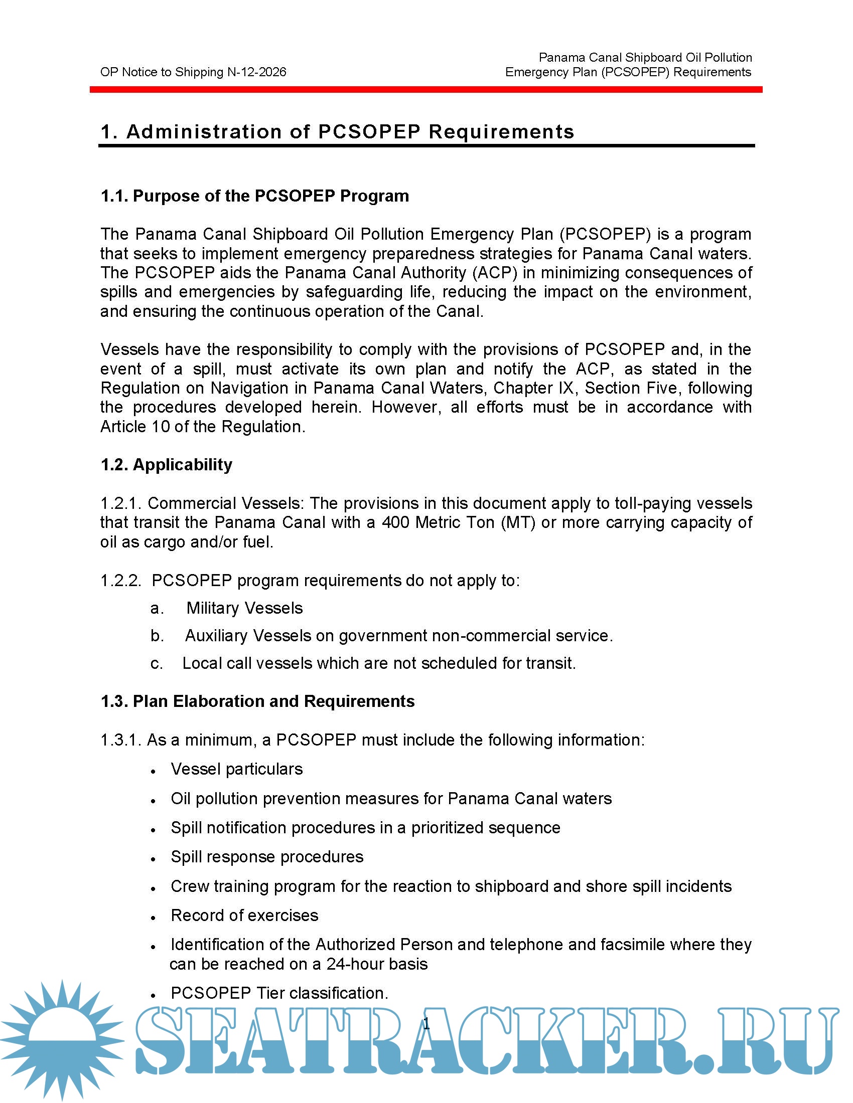 • Panama Canal Shipboard Oil Pollution Emergency Plan (PCSOPEP) Requirements