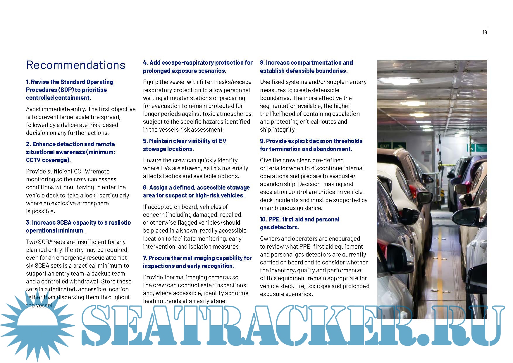 Description: The carriage of vehicles on board PCCs, PCTCs, Ro‑Ro and Ro‑Pax vessels presents a range of well‑established and emerging risks. These vessels’ design characteristics, combined with large volumes of cargo and tight operating margins, mean that incidents involving fire, loss of stability or cargo movement can escalate rapidly if not effectively controlled.