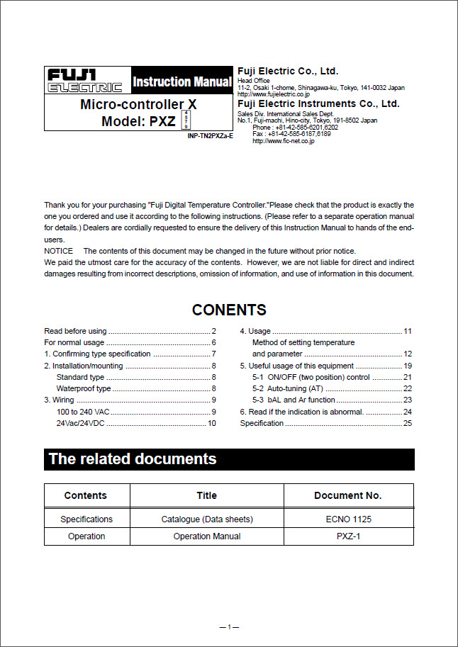 Micro-controller X Model: PXZ / Instruction and Operation Manuals