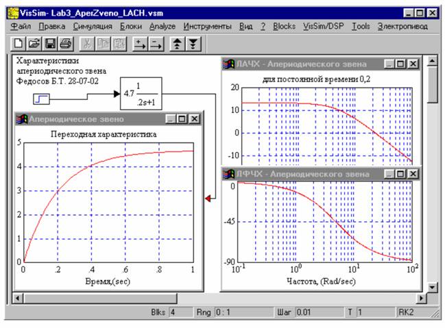 Description: Программное обеспечение для симуляции движения линейных, нелинейных, непрерывных, дискретных, гибридных моделей систем. Имеет частотные, корневые, вариационные, нейронные инструменты оценки качества, устойчивости, синтеза, коррекции, оптимизации, линеаризации, программирования цифровых сигнальных процессоров, отладки объектов в контуре модели. Рекомендуется специалистам по теории систем автоматического регулирования. Интегрируется с массовыми системами компьютерной математики Mathcad и MATLAB.-VisSim is an award winning software program for the modeling and simulation of complex dynamic systems. VisSim combines an intuitive drag & drop block diagram interface with a powerful simulation engine. The visual block diagram interface offers a simple method for constructing, modifying and maintaining complex system models. The simulation engine provides fast and accurate solutions for linear, nonlinear, continuous time, discrete time, time varying and hybrid system designs. With VisSim, users can quickly develop software or "virtual" prototypes of systems or processes to demonstrate their behavior prior to building physical prototypes. Built-in integration tools allow users to communicate seamlessly with MATLAB and Mathcad. A VisSim/SIMULINK Translator™ allows SIMULINK users to import SIMULINK block diagrams directly into VisSim.-Additional info: Currently, there are known incompatibilities between VisSim and Vista with regard to VisSim's configuration file.