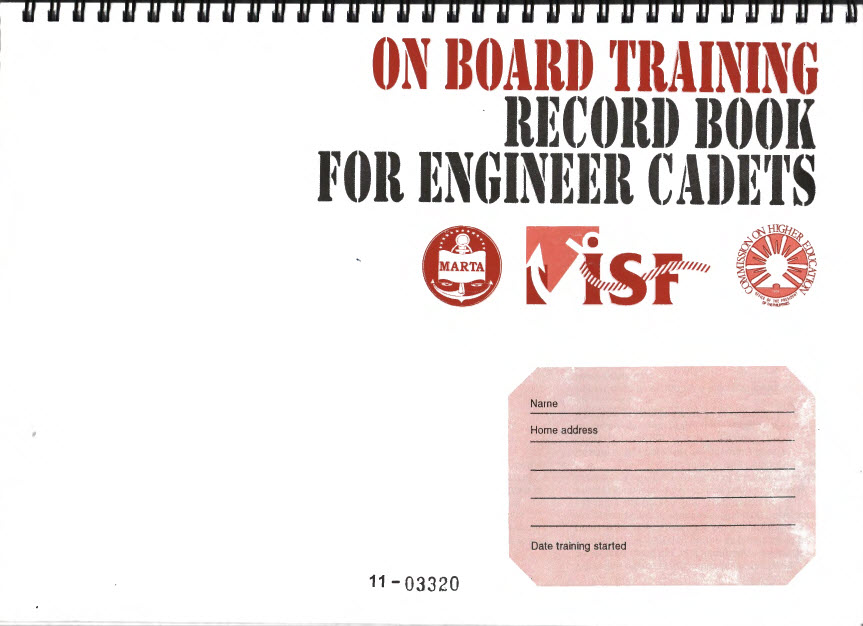This shipboard Training Record Book for Engineer Cadets, developed and published by the International Shipping Federation (ISF) and approved by the Commission on Higher Education (CHED) of the Republic of the Philippines to record the one year shipboard training, forms an integral part of the curriculum for a Bachelor of Science in Marine Engineering. It shall be used by engineer cadets for attaining experience in applying the knowledge provided in college and covers the required training and experience for an officer in charge of an engineering watch.