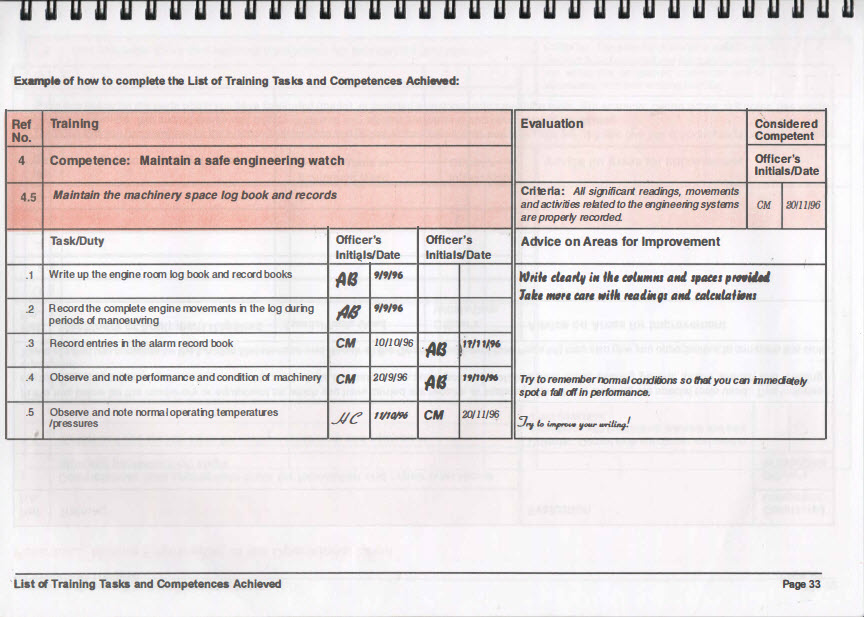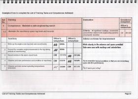• The designated on board training officer appointed by the chief engineer should inspect this Book in order to check progress already made. A plan should be made to tackle the competences that still need to be demonstrated.