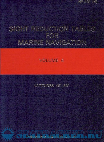 Description: The Sight Reduction Tables for Marine Navigation is published in six Volumes, each of which contains two eight-degree zones of latitude with a one-degree overlap between Volumes. They are designed to facilitate the practice of celestial navigation at sea. The tables are primarily used with the Intercept method of sight reduction by entering arguments of latitude, declination, and Local Hour Angle and obtaining tabulated altitudes and azimuth angles.