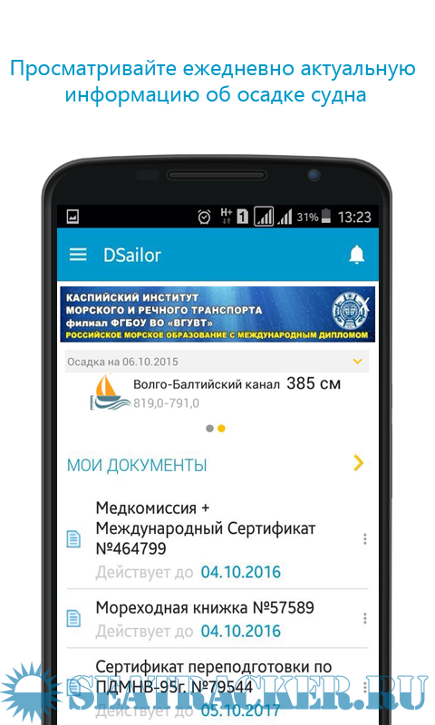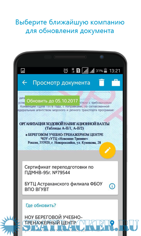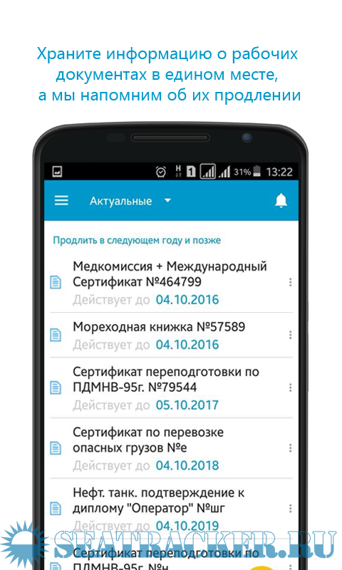 Пардон, но хрень какая-то. Доки меняются раз в 5 лет, в России по крайне мере. А тут в программе надоедающая реклама + вносить свои данные + данные по осадкам судна (???). Что за сборная солянка? И для чего она? Рабочий диплом определяет все даты, т.к. выдается по самый ранее заканчивающийся документ. Диплом заканчивается - пришел в контору капитана порта и там все есть по замене документов: адреса сертифицированных учебных заведений и что какие корочки или фантики они дают. И все это один раз в 5 лет.