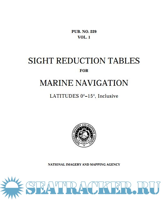 Description: The Sight Reduction Tables for Marine Navigation is published in six Volumes, each of which contains two eight-degree zones of latitude with a one-degree overlap between Volumes. They are designed to facilitate the practice of celestial navigation at sea. The tables are primarily used with the Intercept method of sight reduction by entering arguments of latitude, declination, and Local Hour Angle and obtaining tabulated altitudes and azimuth angles.